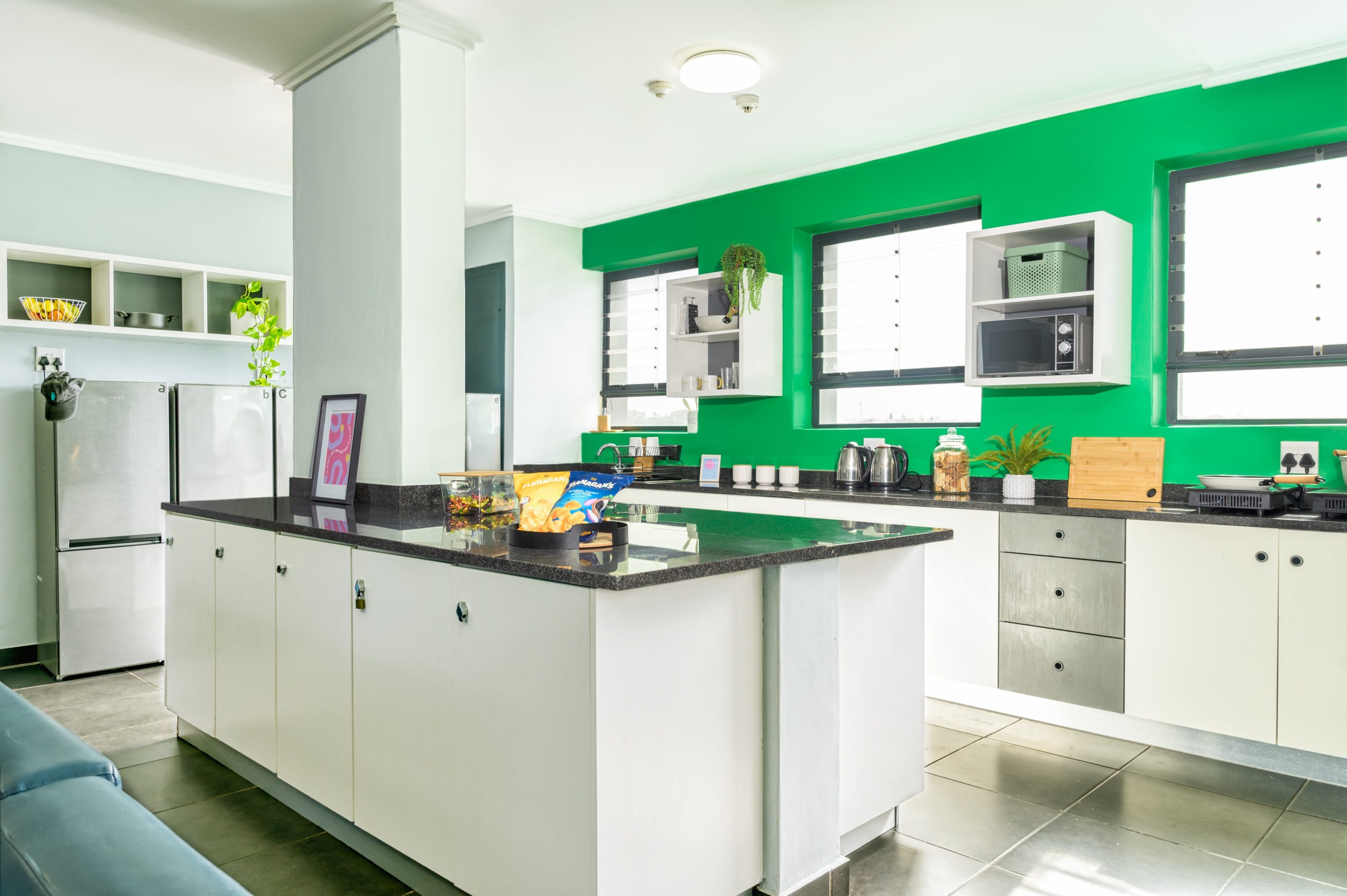 Bigger is better! Our unique apartment features a spacious kitchen, four bathrooms, and a massive lounge shared among 10 rooms. Live your best life in fully furnished, private rooms with showers. Plus, each person gets their own fridge and freezer combo.