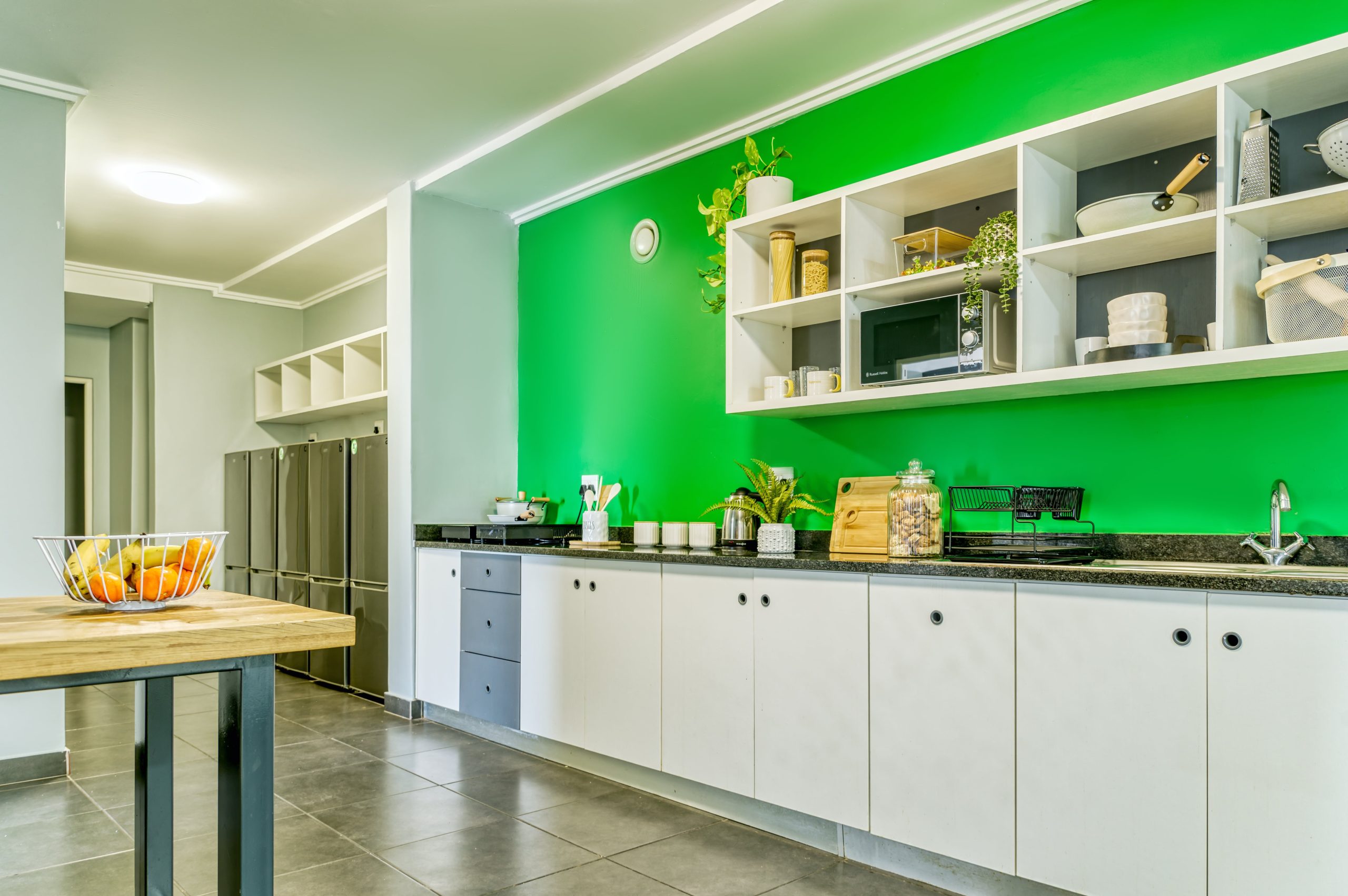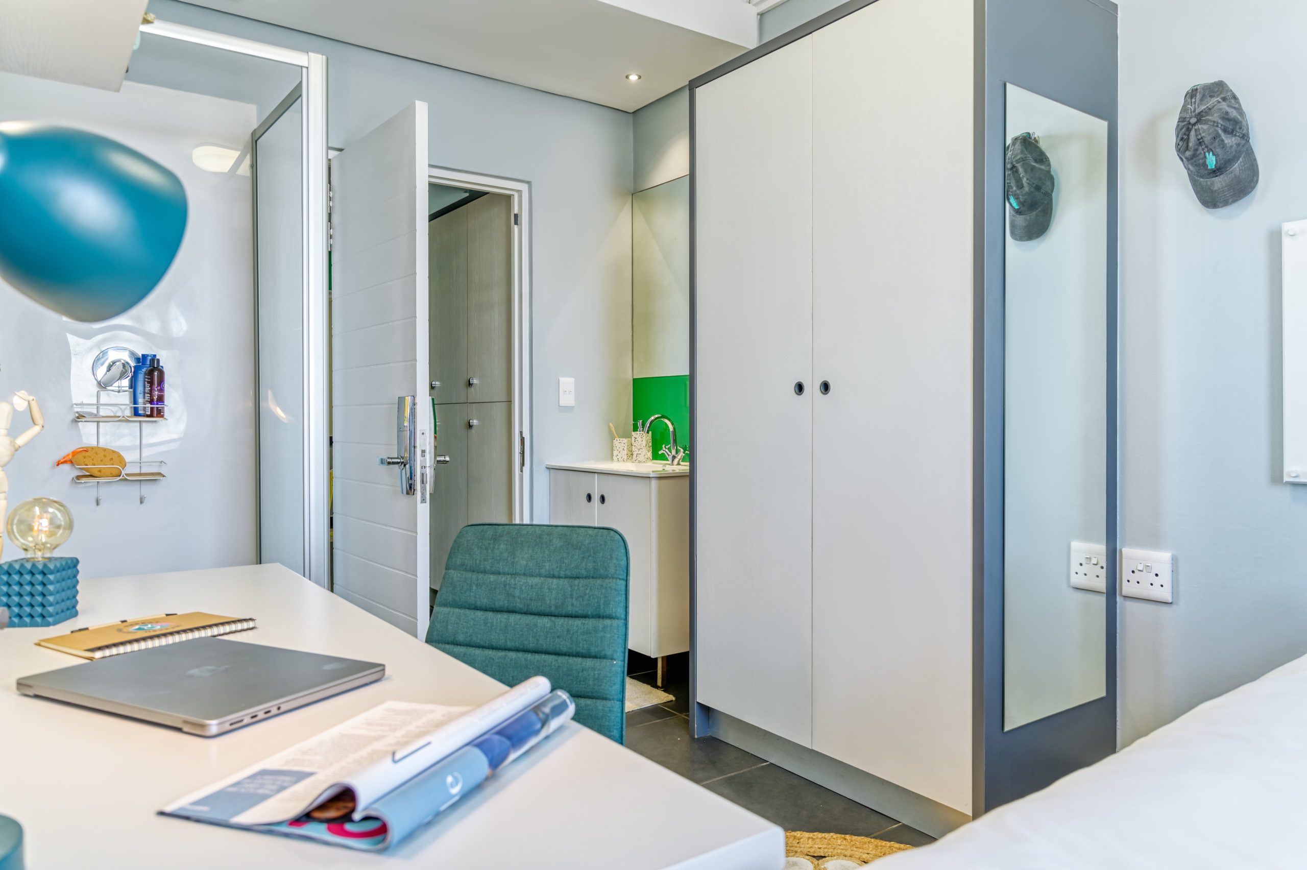 Chill, work, and socialize in our 5-bed Socializer rooms. These fully furnished, private rooms come with a shower and your own fridge. Share a kitchen, two toilets, and a cozy lounge with your 5 roommates. Pretty awesome, right?