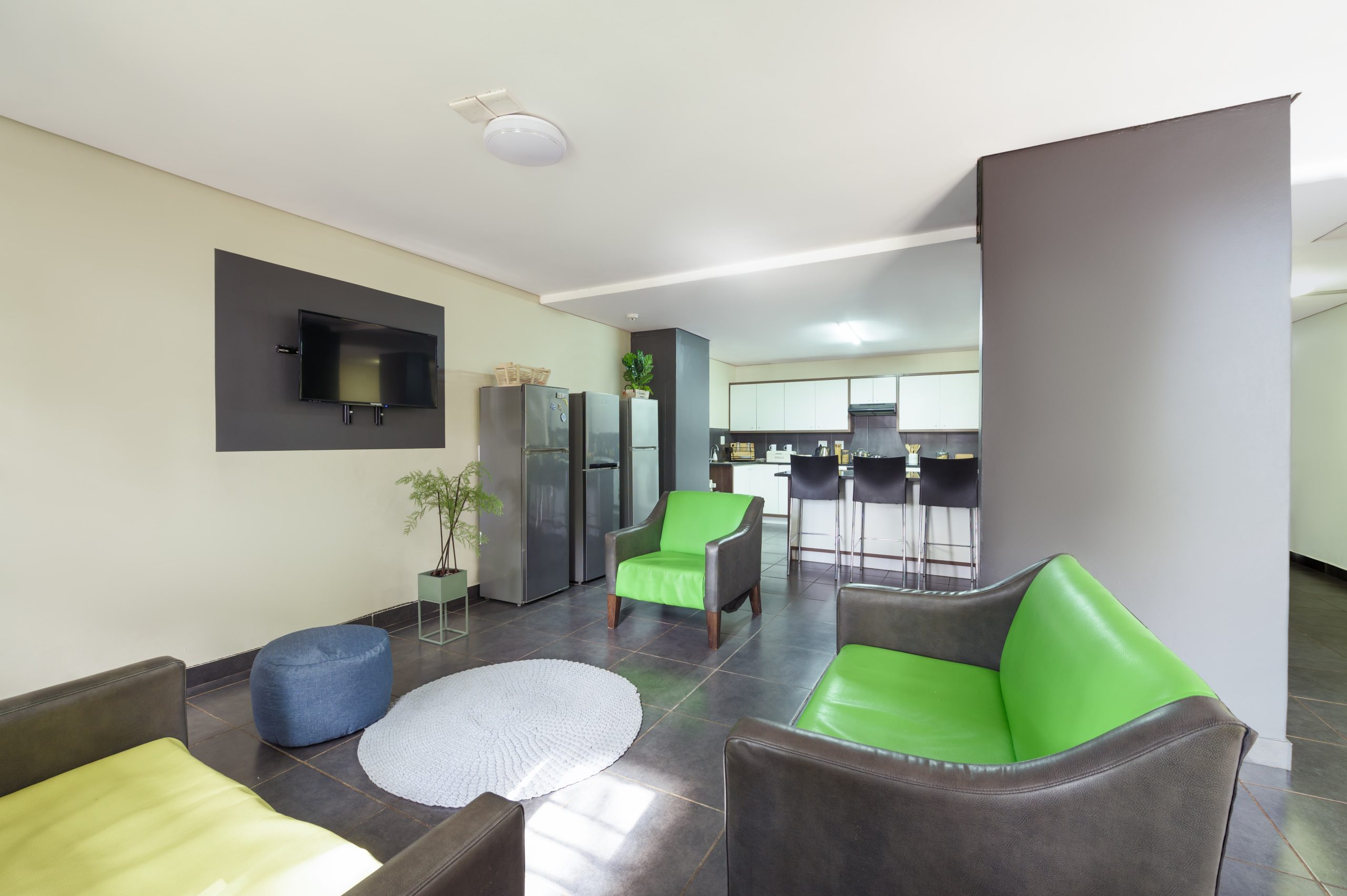 Chill, work and get social in our 4 bed Socializer rooms. These rooms are modern, fully furnished, private, and non-sharing. Share a kitchen, bathroom and a comfortable lounge between you and your roommates.